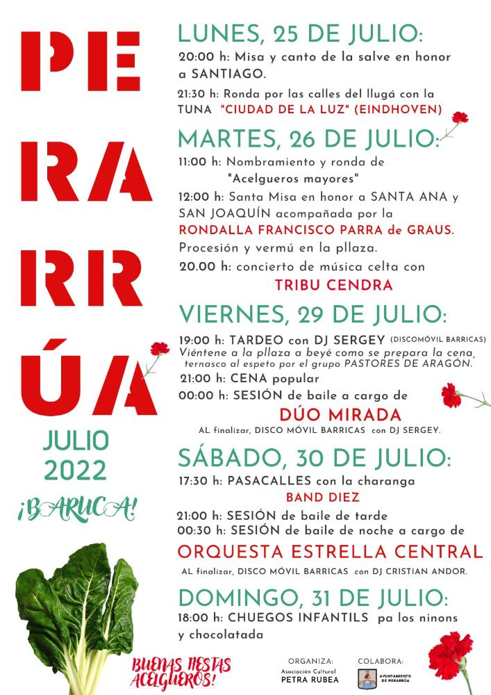 Fiesta mayor de Santa Ana, patrona de Perarrúa. Del 25 al 30 de julio.