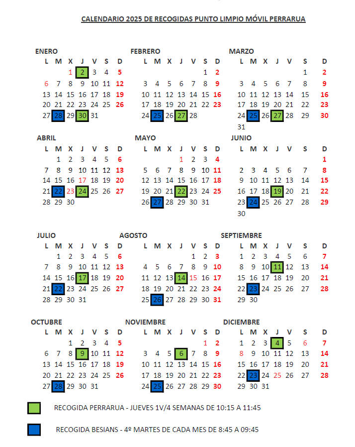 Pueden consultar aquí los días de recogida de residuos del punto limpio móvil que, gracias a la Comarca de la Ribagorza, se instalará cada cuatro semanas en nuestro municipio.